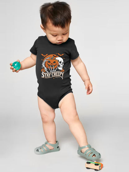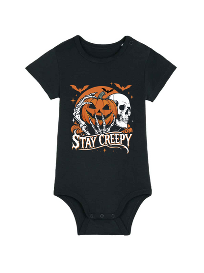 Baby Body pentru bebelusi Stay Creepy este confectionat din bumbac organic moale si delicat, perfect pentru pielea sensibila a bebelusului tau.