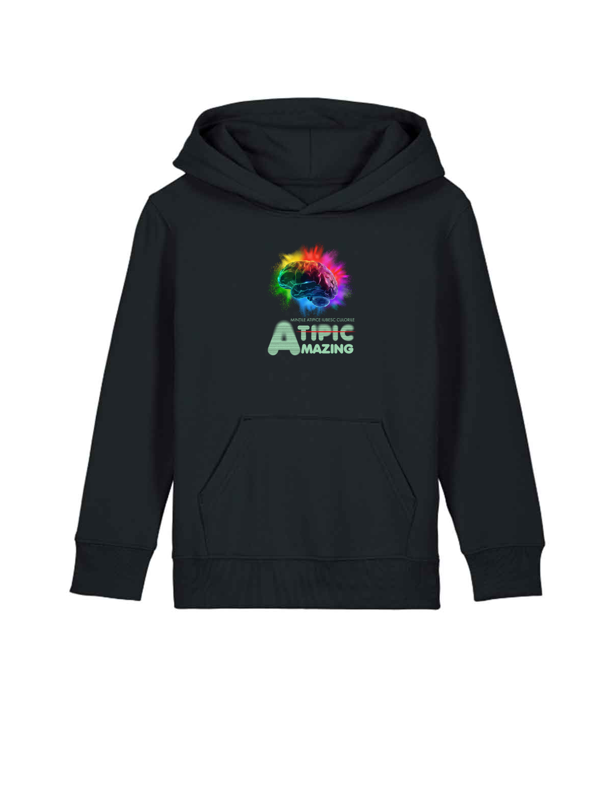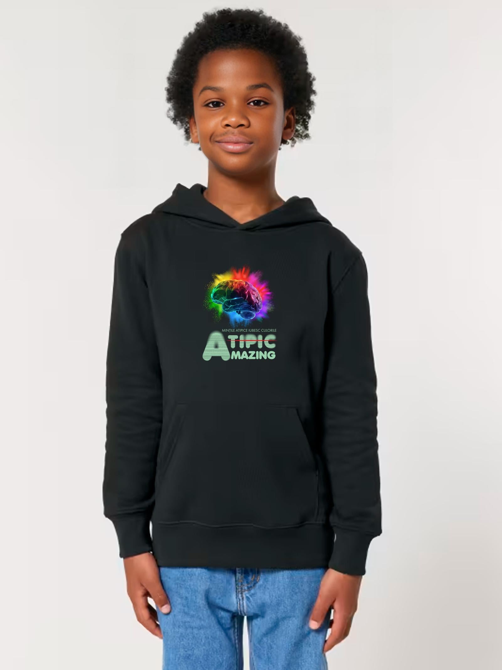 Hanoracul premium pentru copii Mintile atipice iubesc culorile #2 combina confortul si stilul intr-un design modern si practic.